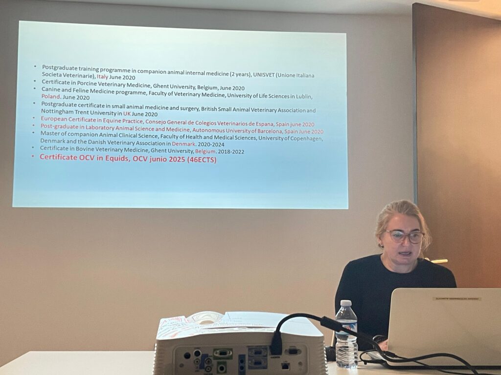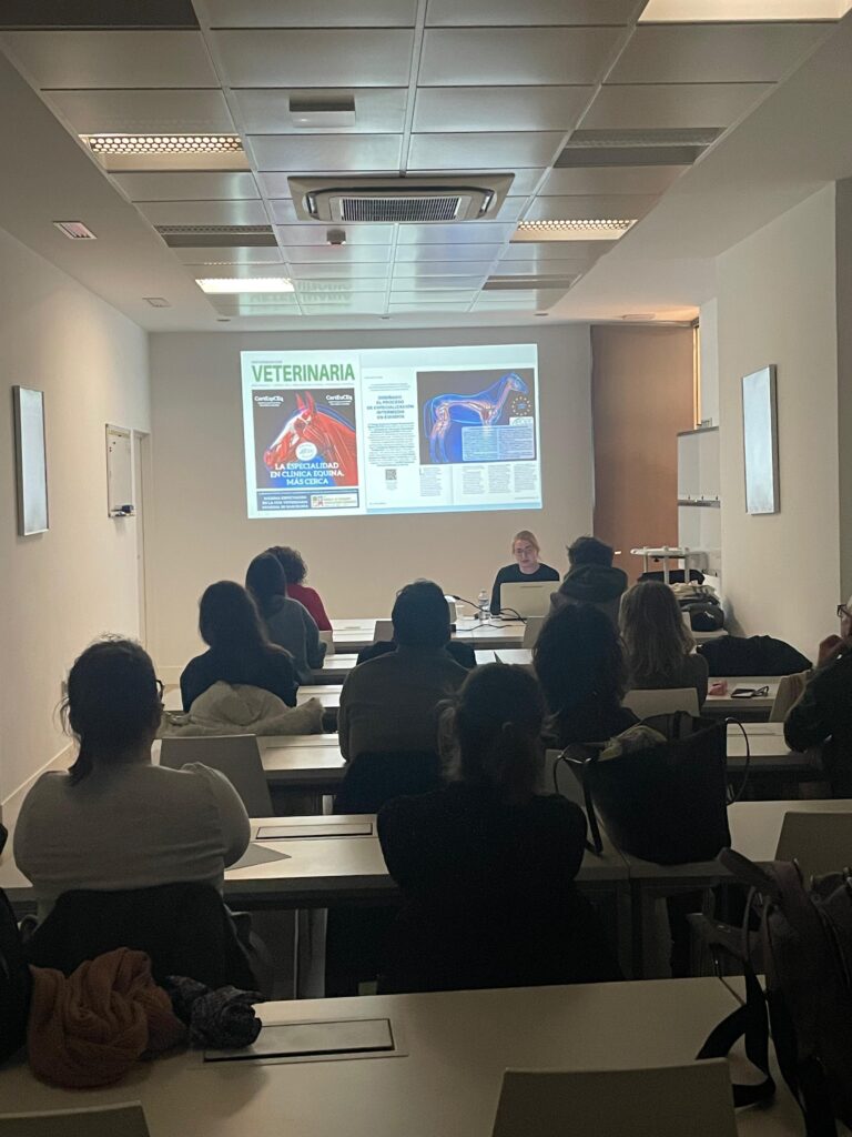 Durante esta sesión se presentó el sistema de especialización profesional veterinaria impulsado por la OCV, desarrollado en colaboración con las universidades y alineado con los estándares europeos de calidad educativa (VetCEE).
