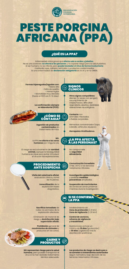 Se recuerda que la PPA es una enfermedad no zoonósica, es decir, las personas no son susceptibles a la infección ni por contacto con los animales ni por ingestión de productos derivados de ellos.